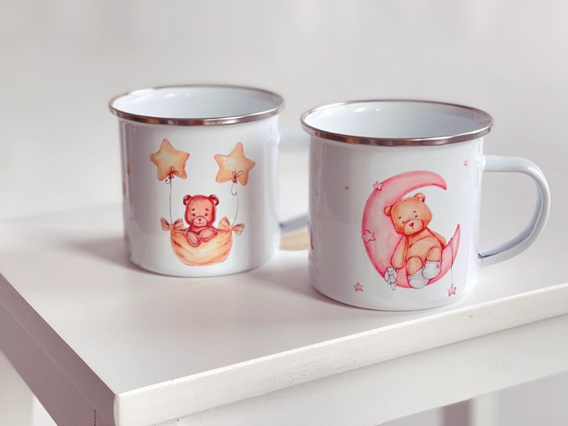 Sublimatsioontrükk võimaldab tassi pinna sisse kuumuse abil viia tindiga erinevaid pilte, tsitaate ja ütlusi, muutudes seevastu täiesti pesukindlaks- nii käsitsi kui ka nõudepesumasinas! Tassil kujundused on kahel pool – nimi/nimetäht + nimi on lapse suunas (paremakäelistel)